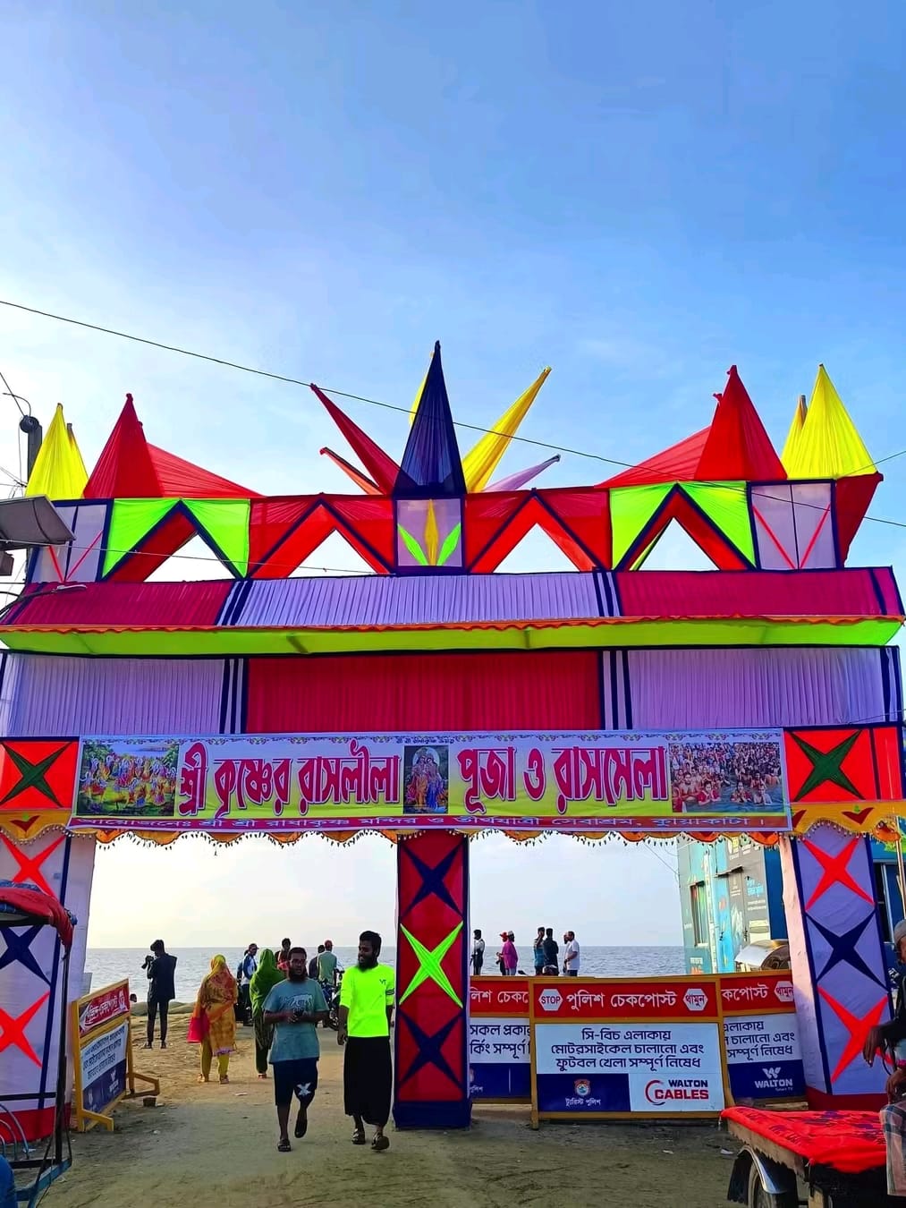 কুয়াকাটায় রাস উৎসব উপলক্ষে চলছে শেষ মুহুর্তের সাজ সজ্জার কাজ