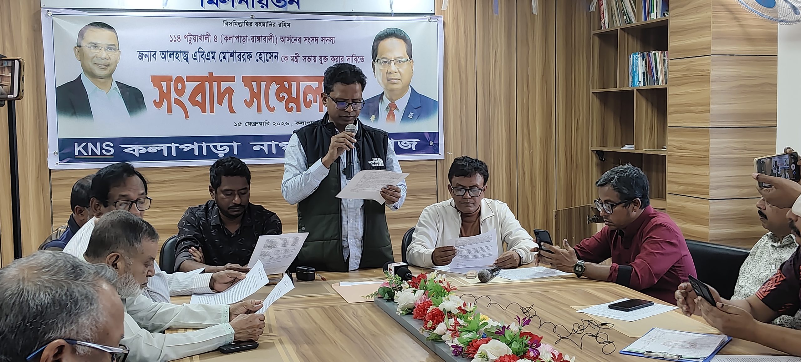 পটুয়াখালী-৪ আসনে নব নির্বাচিত সংসদ এবিএম মোশাররফ হোসেনকে মন্ত্রিসভার সদস্য করার দাবীতে সংবাদ সম্মেলন