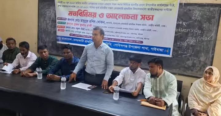 বে-সরকারি-প্রাথমিক বিদ্যালয়ের শিক্ষকদের জাতীয় করনের দাবীতে মতবিনিময়