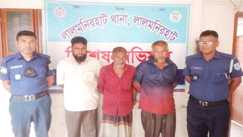 লালমনিরহাটে তামাকবাহী ট্রাক থেকে গাঁজাসহ ৩জন মাদক ব্যবসায়ী আটক