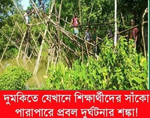 পটুয়াখালী জেলার দুমকি উপজেলায় , জরাজীর্ণ বাঁশের সাঁকো দিয়ে প্রতিদিন শিক্ষার্থী ও স্থানীয় বাসিন্দারা যাতায়াত করছেন। যেকোনো সময় বড় ধরনের