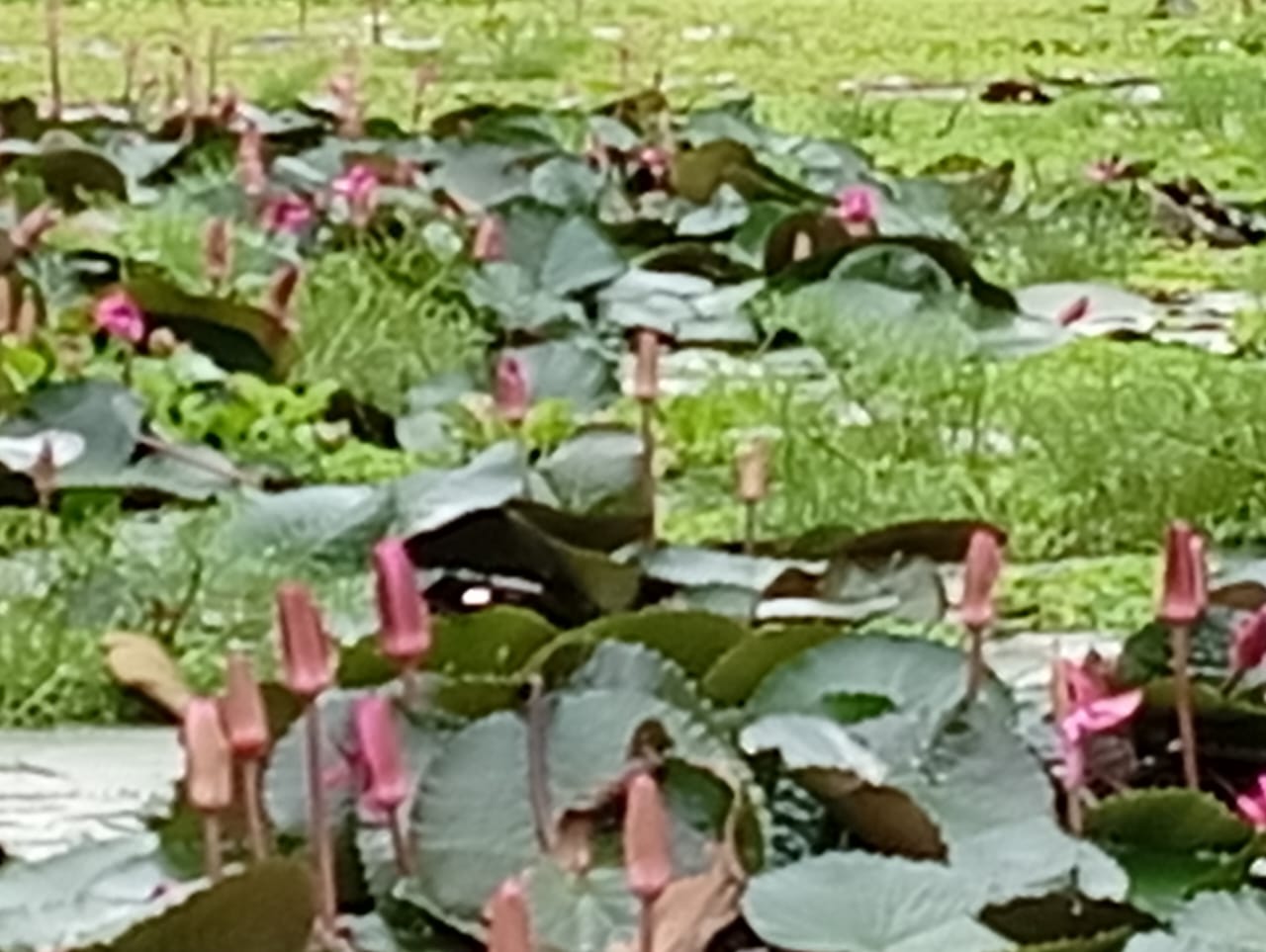 লালমনিরহাটের মুস্তফী হতে তিস্তা বাসস্ট্যান্ড সড়কের পূর্ব পার্শ্বে পুকুরের পানির হালকা ঢেউয়ের তালে তালে মাথা উঁচু করে আছে সাদা-গোলাপী পাঁপড়ির