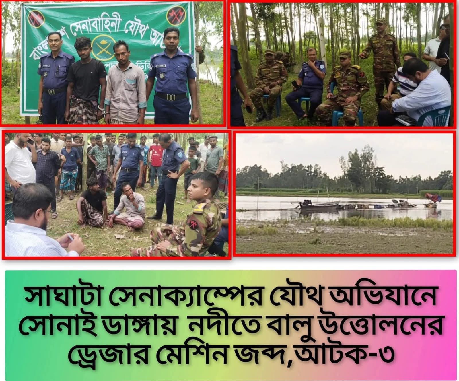 সাঘাটা সেনা ক্যাম্পের সফল অভিযান: পার সোনাইডাঙ্গায় নদীতে অবৈধ ড্রেজার জব্দ, আটক ৩