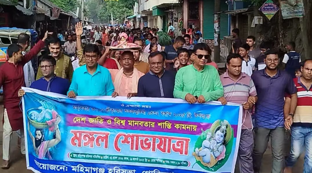 মহিমাগঞ্জে শুভ জন্মাষ্টমী উপলক্ষে মঙ্গল শোভাযাত্রা অনুষ্ঠিত