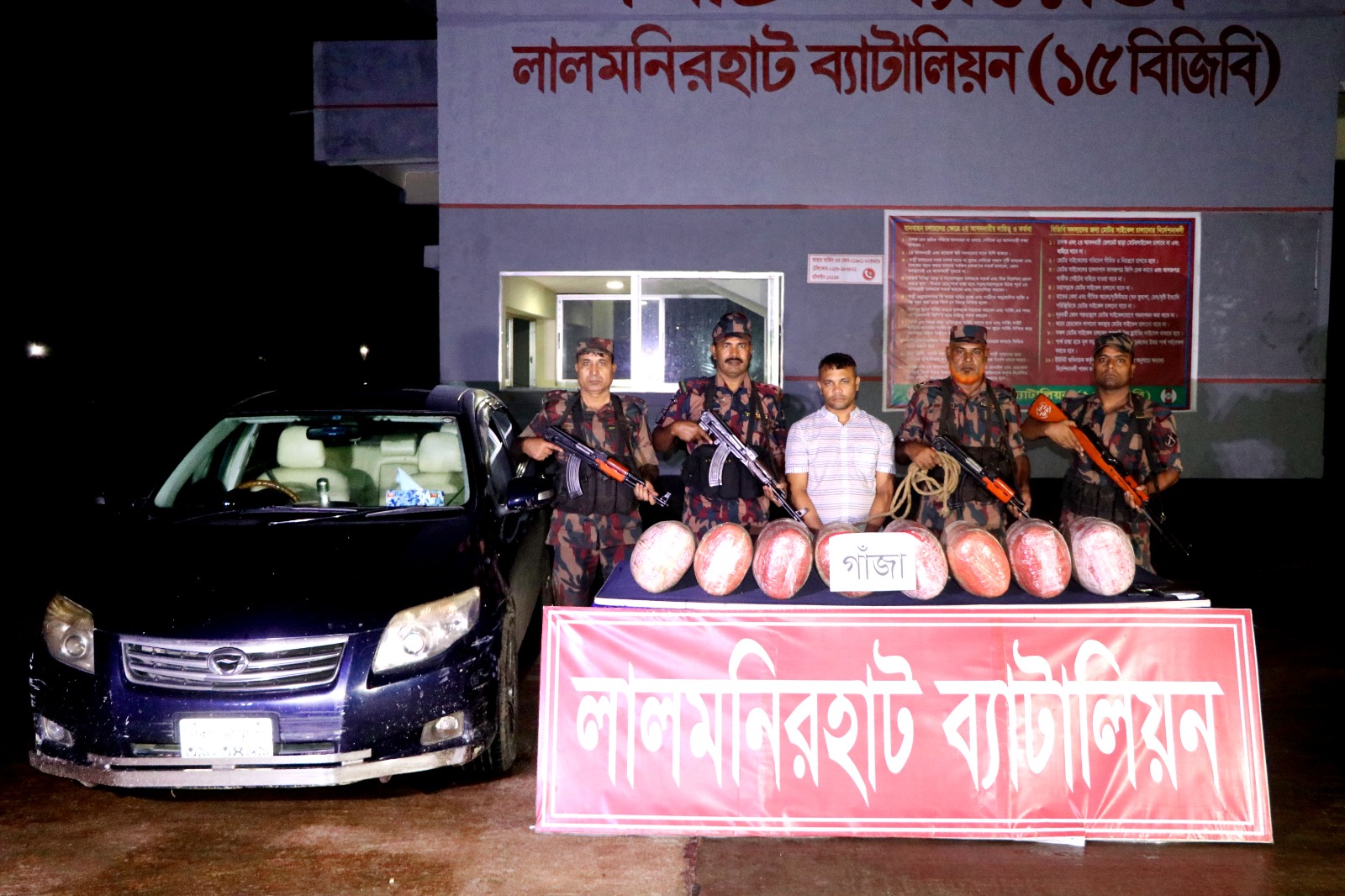 লালমনিরহাটে ১৫ বিজিবি’র বিশেষ অভিযানে বিপুল পরিমাণ ভারতীয় গাঁজাসহ প্রাইভেটকার ও আসামী আটক