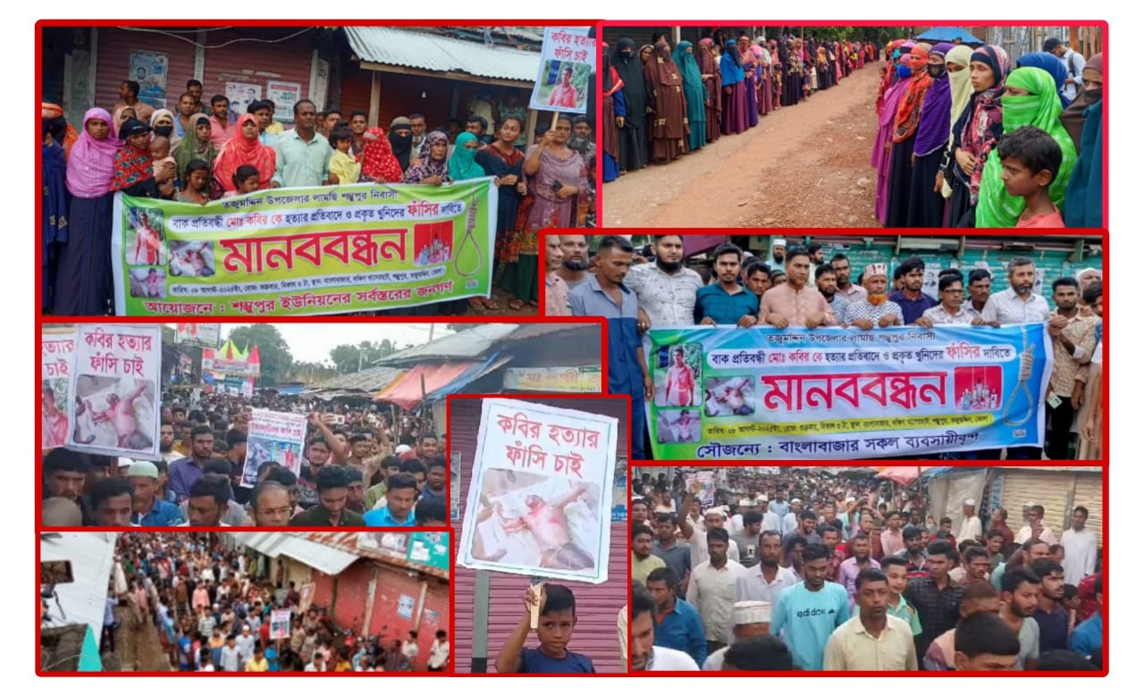 তজুমদ্দিনে বাকপ্রতিবন্ধী যুবক কবির হত্যার বিচার দাবিতে বিক্ষোভ ও মানববন্ধন