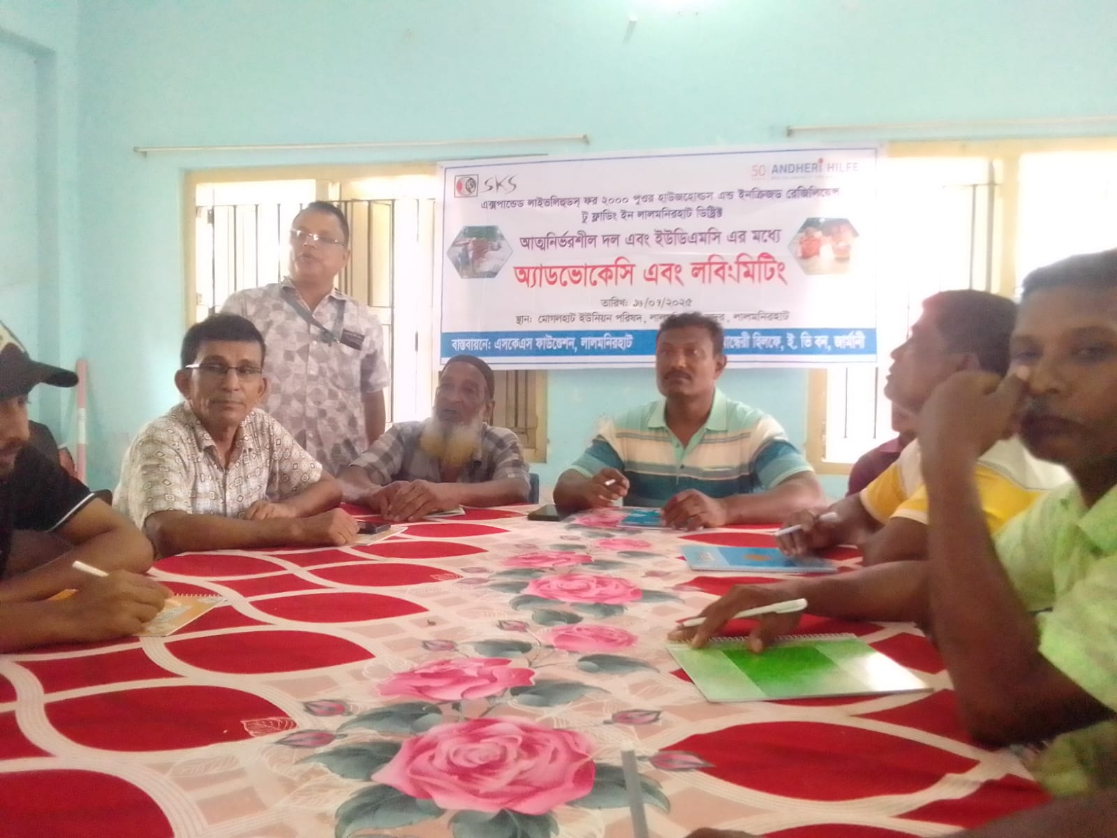 লালমনিরহাটে আত্মনির্ভরশীল দল এবং ইউডিএমসি এর মধ্যে অ্যাডভোকেসি এবং লবিং মিটিং অনুষ্ঠিত।