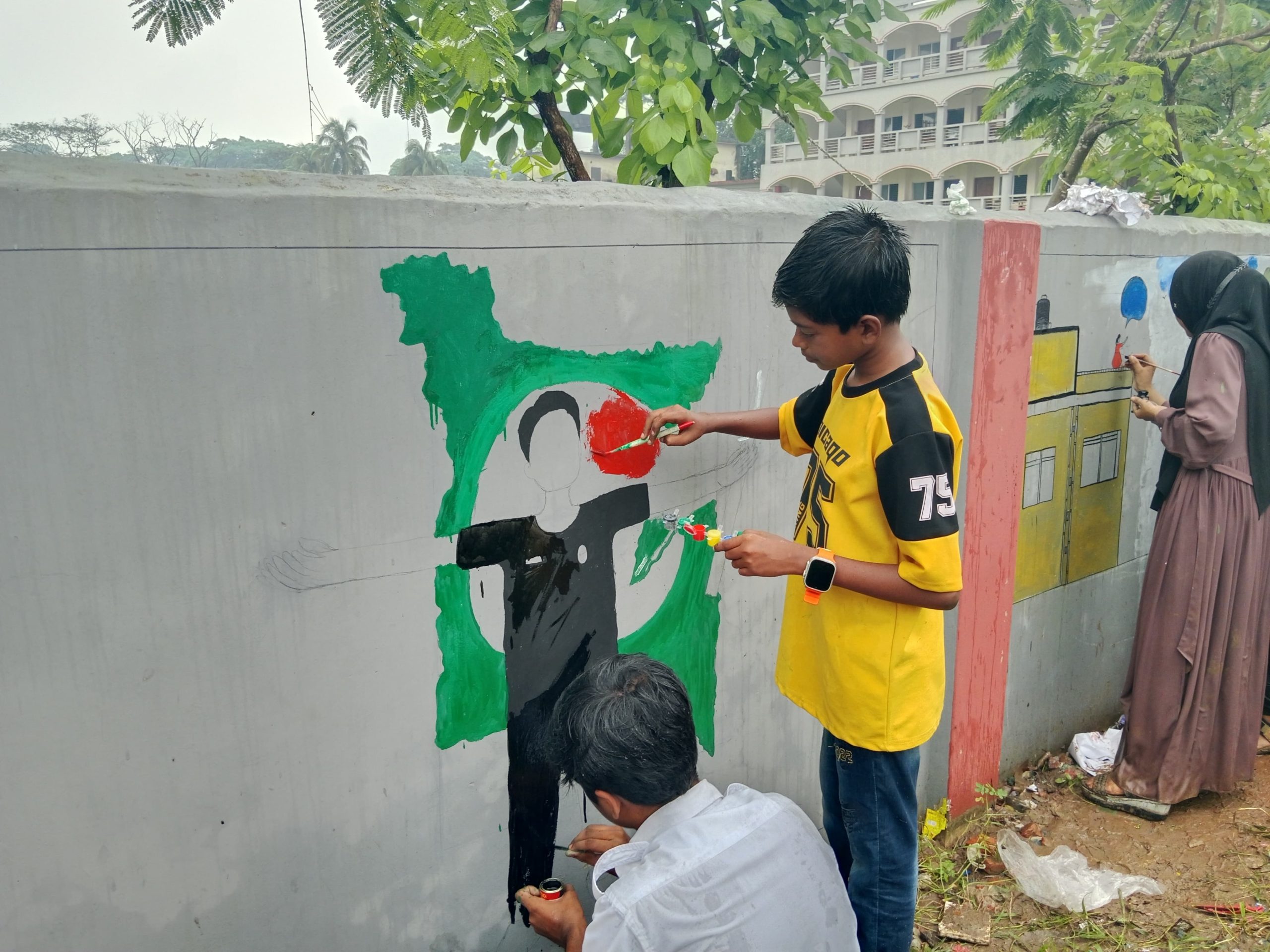 বৃষ্টি উপেক্ষা করে কলাপাড়ায় ২৪’র রঙে গ্রাফিতি ও চিত্রাংকন প্রতিযোগিতা