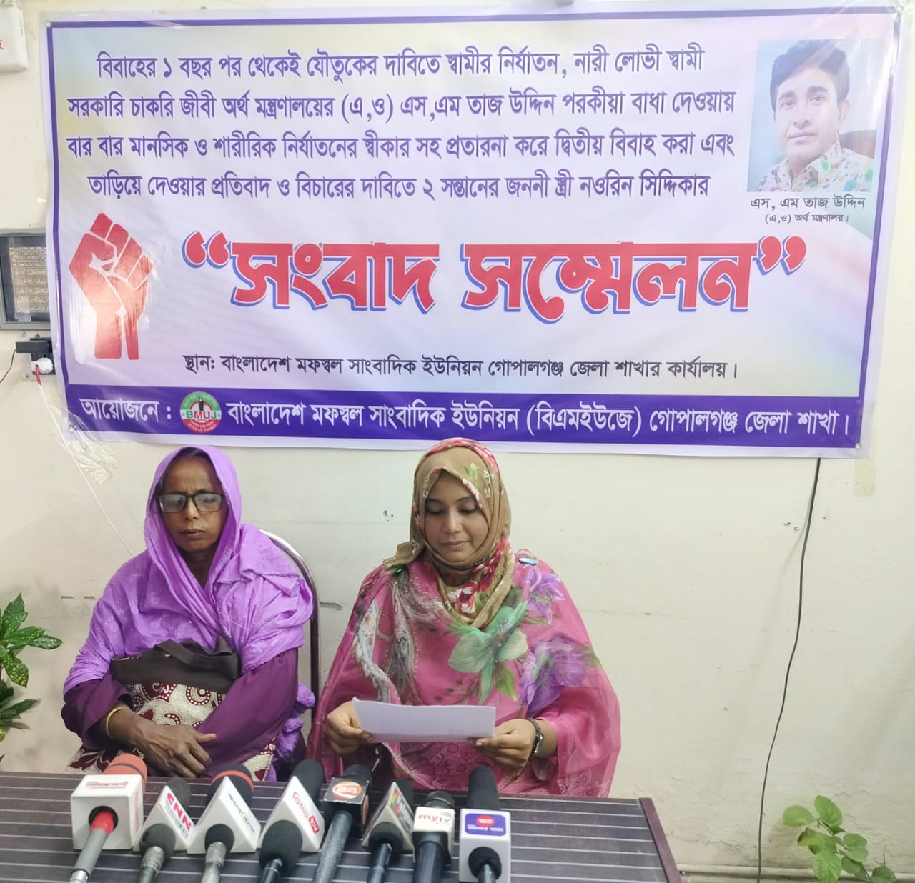 প্রশাসনিক কর্মকর্তা(এও)তাজ উদ্দিনের নির্যাতন, প্রতারণা ও দ্বিতীয় বিবাহের প্রতিবাদে স্ত্রীর সংবাদ সম্মেলন।