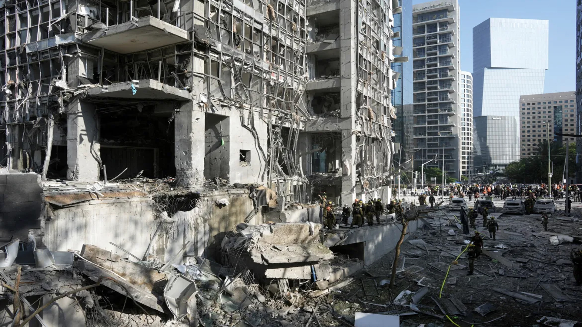 ইরানের ক্ষেপণাস্ত্র হামলায় ইসরাইলের রামাত গান এলাকায় ক্ষতিগ্রস্ত একটি বহুতল ভবন। ছবি: এপি ইসরাইলের আগ্রাসনের পাল্টা জবাব অব্যাহত রেখেছে ইরান।