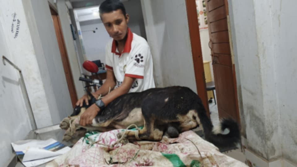 কলাপাড়ায এসিল্যান্ডের হস্তক্ষেপে প্রান ফিরে পেলো টেটাবিদ্ধ কুকুর