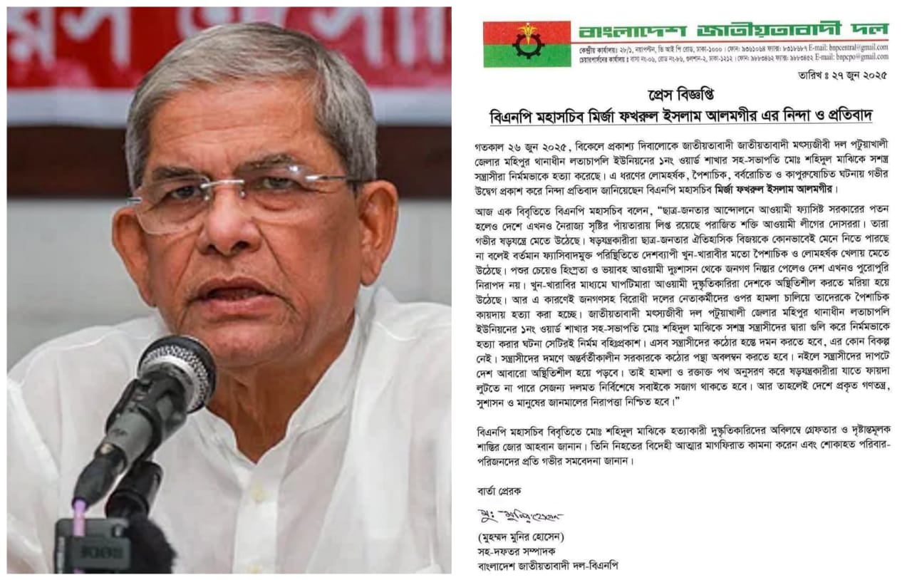 মহিপুরে মৎস্যজীবী দল নেতাকে পিটিয়ে হত্যার ঘটনায় বিএনপির মহাসচিবের নিন্দা