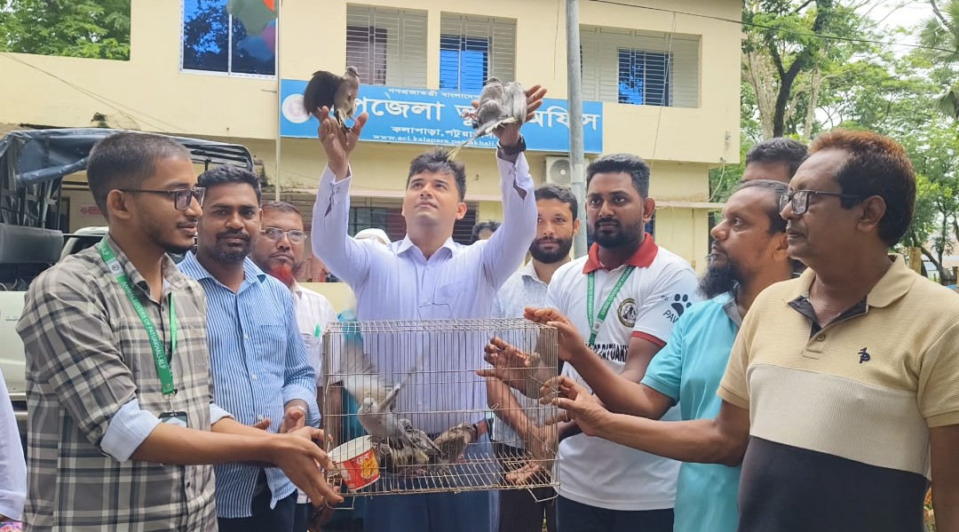 কলাপাড়ায় উদ্ধারকৃত দেশী প্রজাতির ১০টি তিলা ঘুঘু অবমুক্ত