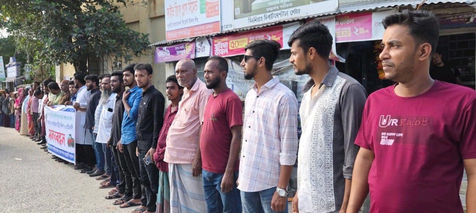 ভিপি নুরকে অবরুদ্ধ করার প্রতিবাদে বাউফলেমানববন্ধন ও বিক্ষোভ।