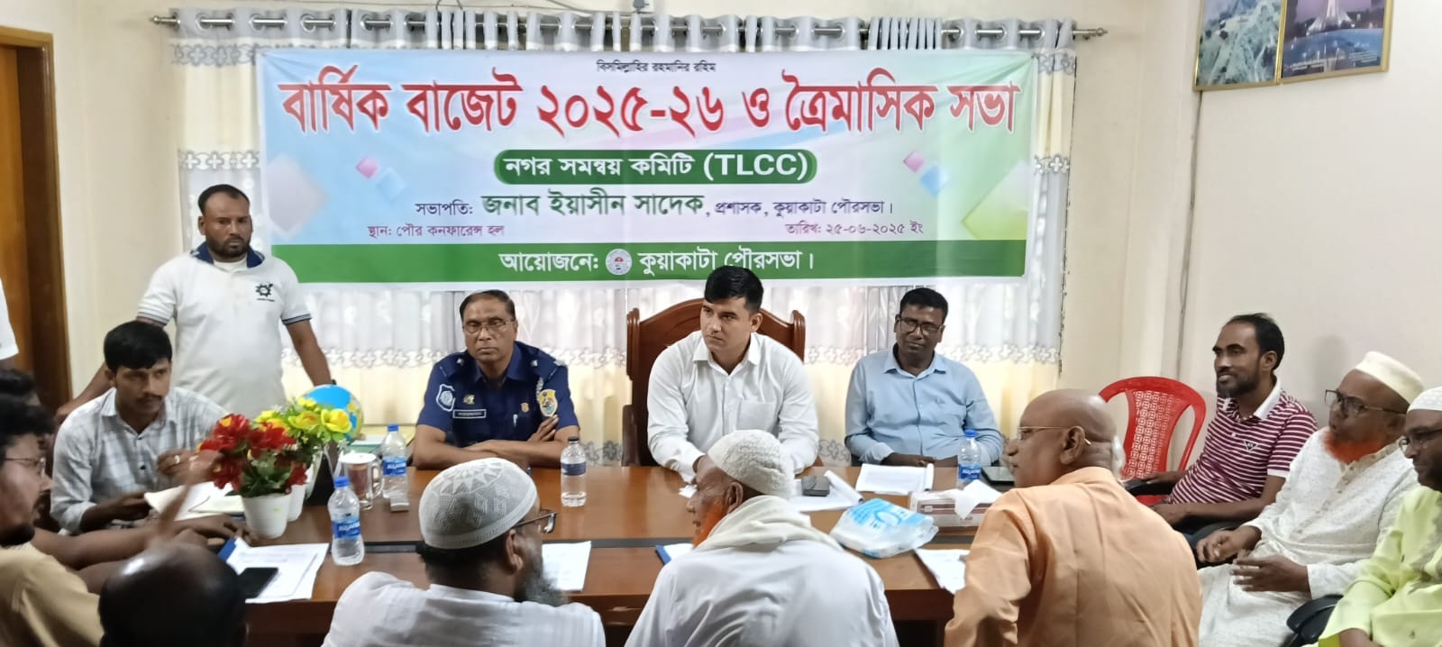 কুয়াকাটা পৌরসভার বার্ষিক বাজেট ২০২৫-২৬ ও ত্রৈমাসিক সভা সোমবার সকাল ১০টায় কুয়াকাটা পৌরসভা হলরুমে অনুষ্ঠিত হয়েছে। অনুষ্ঠানে সভাপতিত্ব করেন কুয়াকাটা
