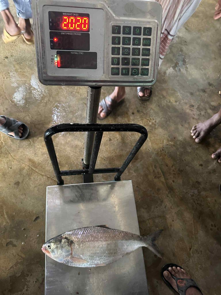 পটুয়াখালীর কুয়াকাটায় ২ কেজি ২২০ গ্রাম ওজনের একটি ইলিশ মাছ ৭ হাজার ৭০০ টাকায় বিক্রি হয়েছে।