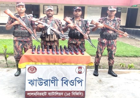 গত এক সপ্তাহে লালমনিরহাট ব্যাটালিয়ন (১৫ বিজিবি) এর দায়িত্বপূর্ণ এলাকায় বিজিবি’র বিশেষ টহলদল কর্তৃক সীমান্ত এলাকায় সফল অভিযান পরিচালনা করে বিপুল পরিমাণ গাঁজা ও ফেন্সিডিল জব্দ করেছে। চোরাচালান প্রতিরোধের মাধ্যমে সীমান্ত নিরাপত্তা ও মাদক বিরোধী অভিযানে বিজিবি’র দৃঢ় অবস্থানের প্রমাণ মিলেছে।