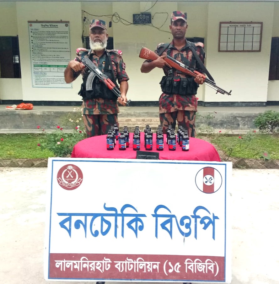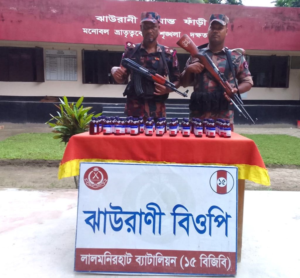লালমনিরহাটে ১৫ বিজিবি’র অভিযানে বিপুল পরিমাণ গাঁজা, ফেন্সিডিল ও ইস্কাফ সিরাপ জব্দ